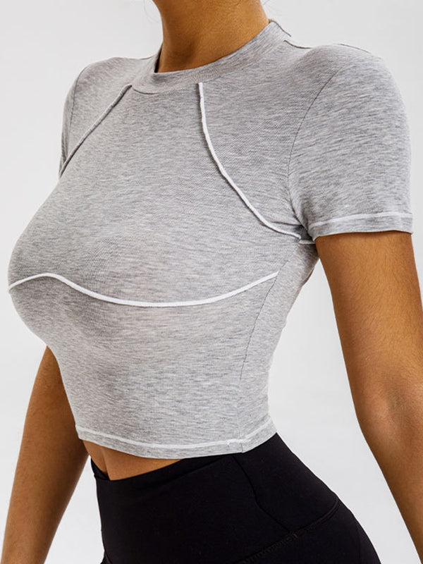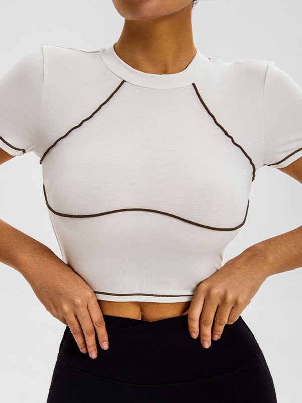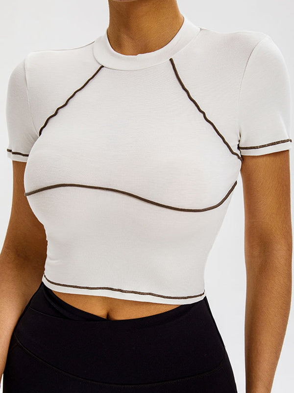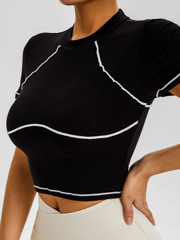 ZASUWA Female Sexy Contrast Color Stripes High-rise Short Sleeves