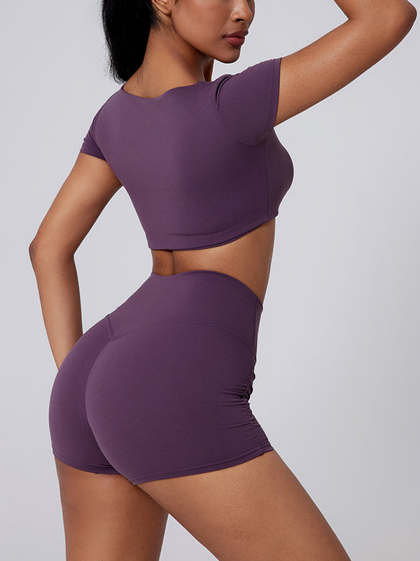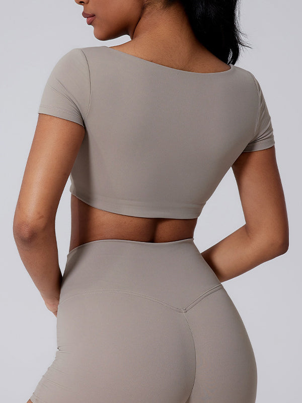 ZASUWA Female Sexy Solid Color U Collar Folds Quick Dry Short Sleeves