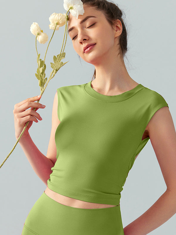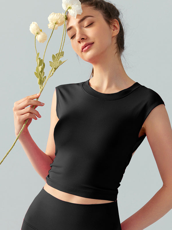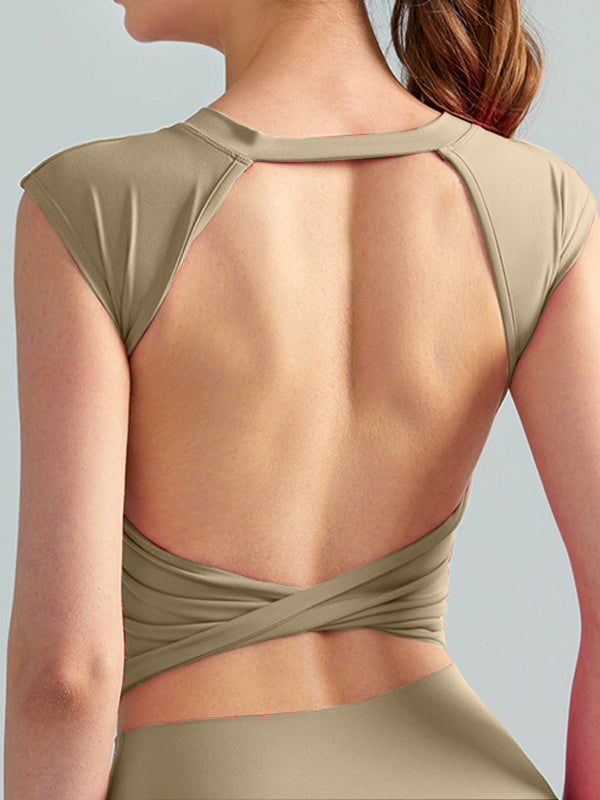 ZASUWA Female Sexy Twist Hollow Out Backless Round Neck Short Sleeves
