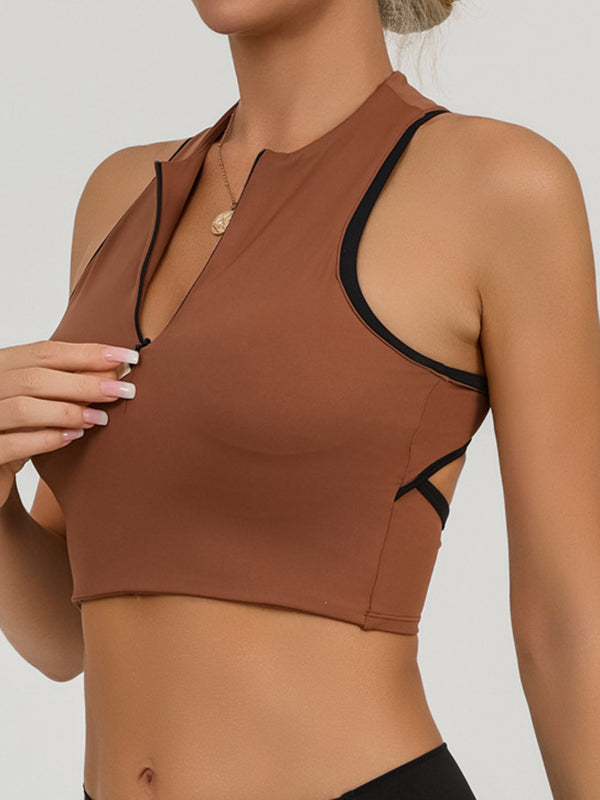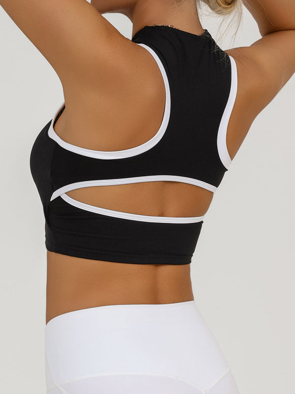 ZASUWA Female Sexy Contrast Color Hollow Out Solid Color Backless Quick Dry Tank