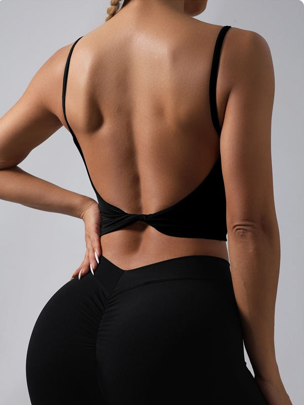 ZASUWA Female Sexy Solid Color Twist Backless Round Neck Tank