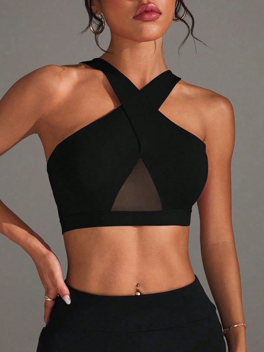 ZASUWA Female Sexy Solid Color Sheer Mesh Cross Tank