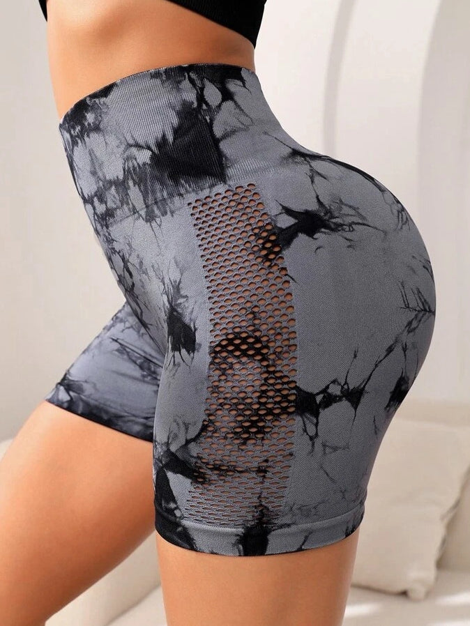 ZASUWA Female New Hot Tie-dye Net Scrunch Bum Spandex Gym Booty Shorts