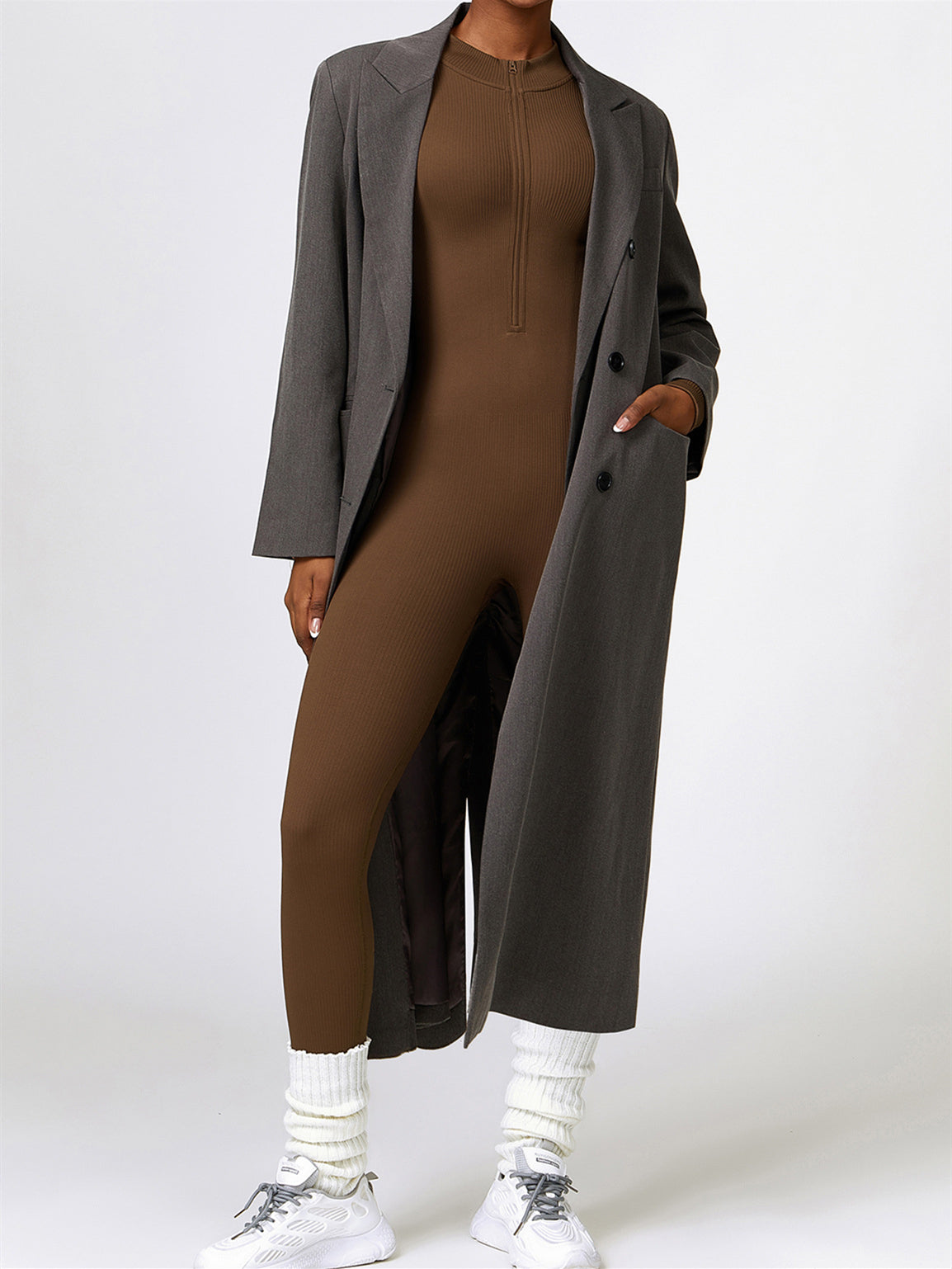ZASUWA Female Ribbed Zipper Stand Collar Jumpsuit