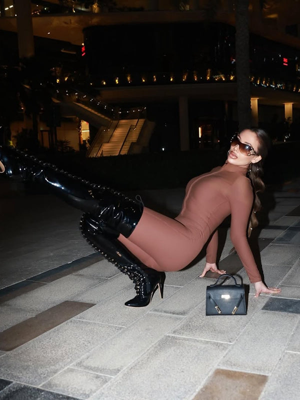 ZASUWA Female Ribbed Zipper Stand Collar Jumpsuit