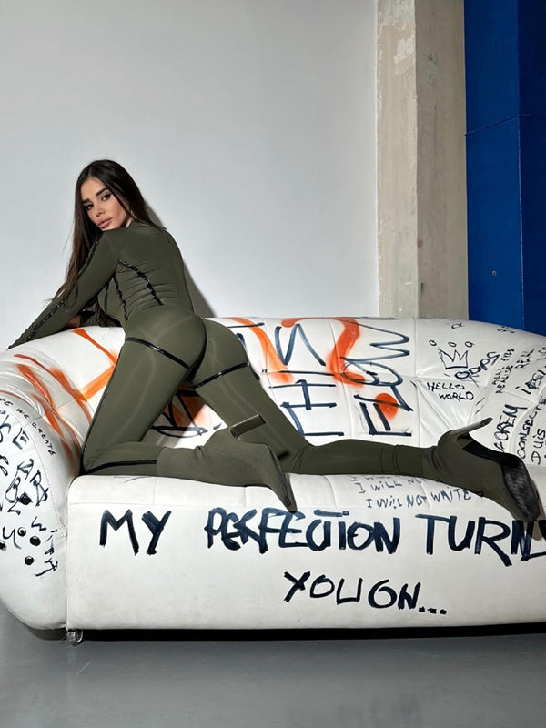 ❤ZASUWA Female Push-up Zipper Peach Booty Jumpsuit