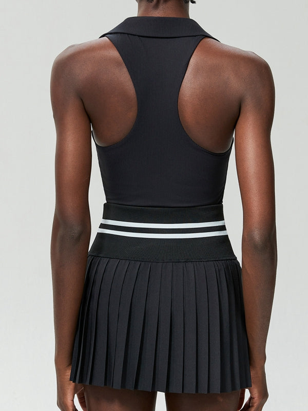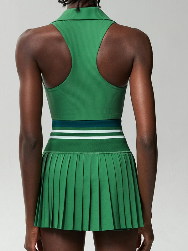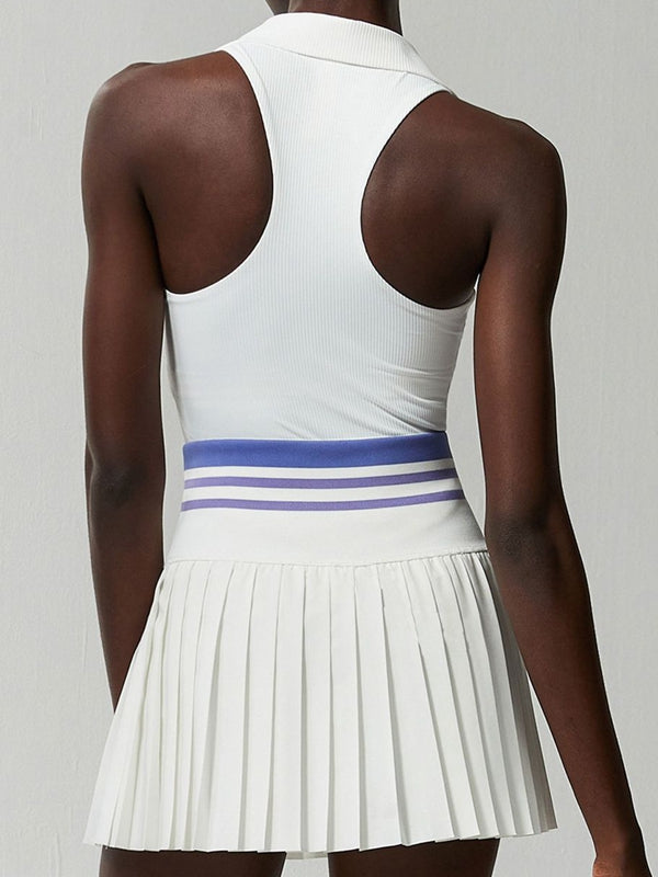 ZASUWA Female V-Collar Pleated 2 In 1 Tennis Skirts Suit