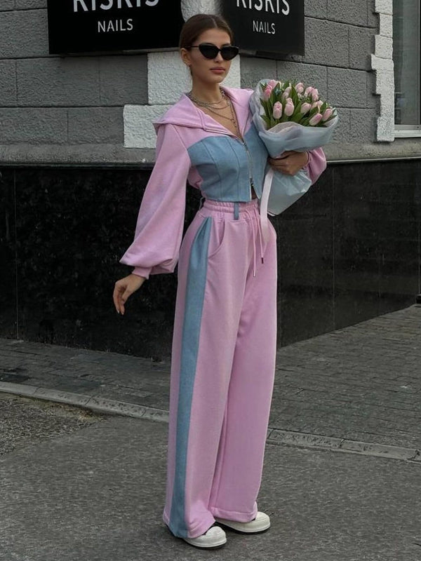 ZASUWA Female Sexy Contrast Color Pocket Casual Tracksuit