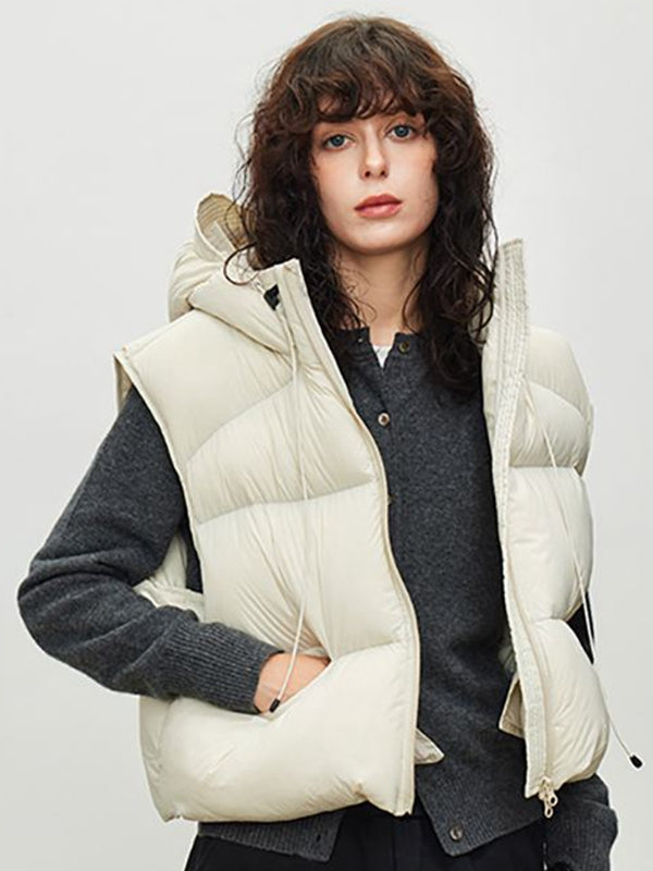 ZASUWA Female Pocket Zipper Warm With Hat Coat Vest