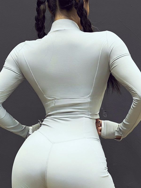 ZASUWA Female Zipper Pocket Thumbhole Cropped Long Sleeves