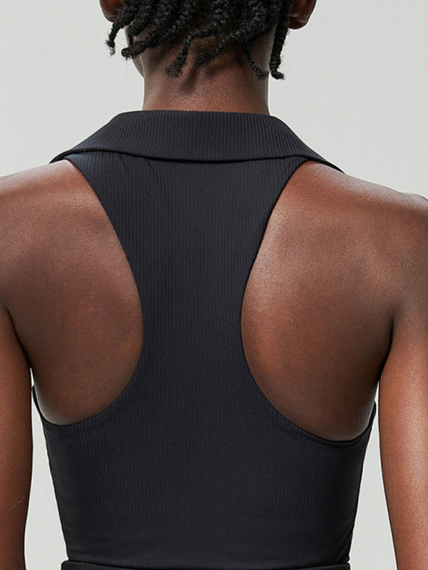 ZASUWA Female Solid Color V-neck Ribbed Quick Dry Tank