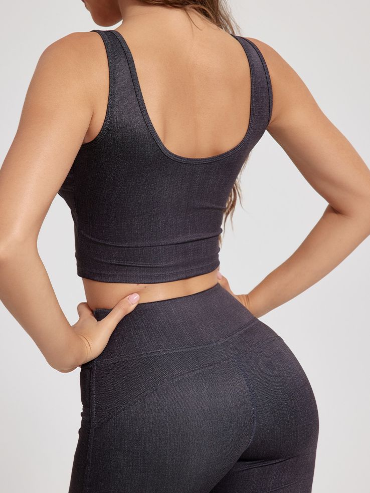 ZASUWA Female Denim Hollow Out Sexy U Collar Tank