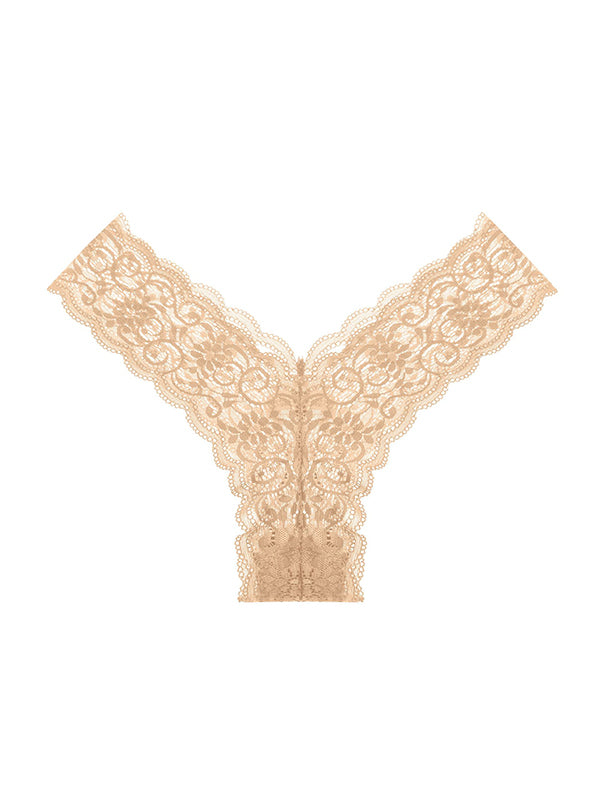 ZASUWA Female V-shape Wasited Flower Lace T-back Panties