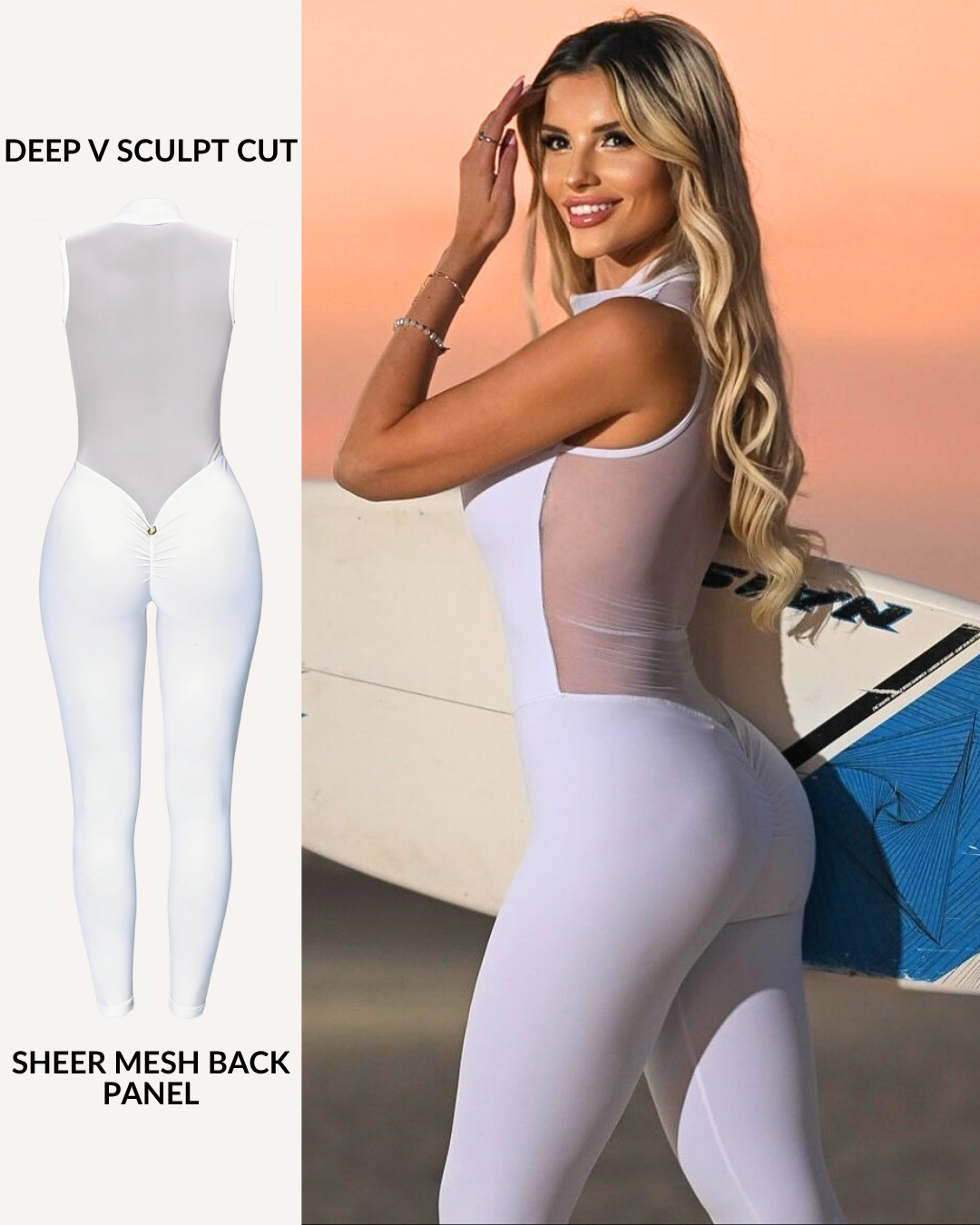 ❤Sexy Sheer Mesh Back Deep V Back Scrunch Bum Zipper Jumpsuit