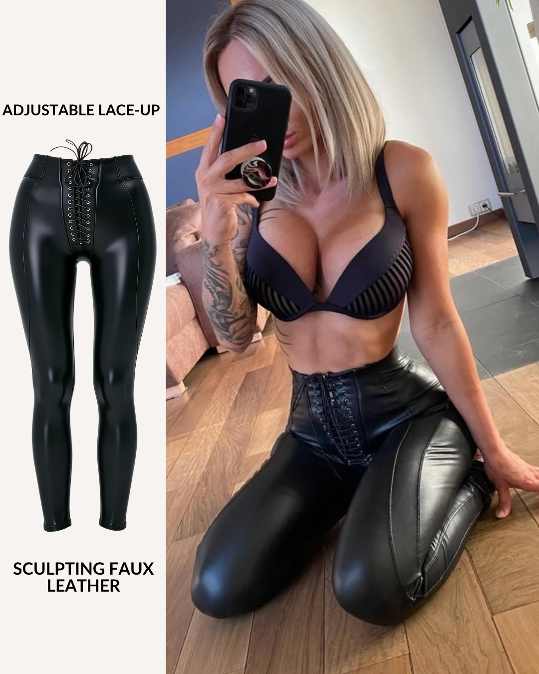 ❤Sexy Faux Leather Push Up Design Lace-up Leggings