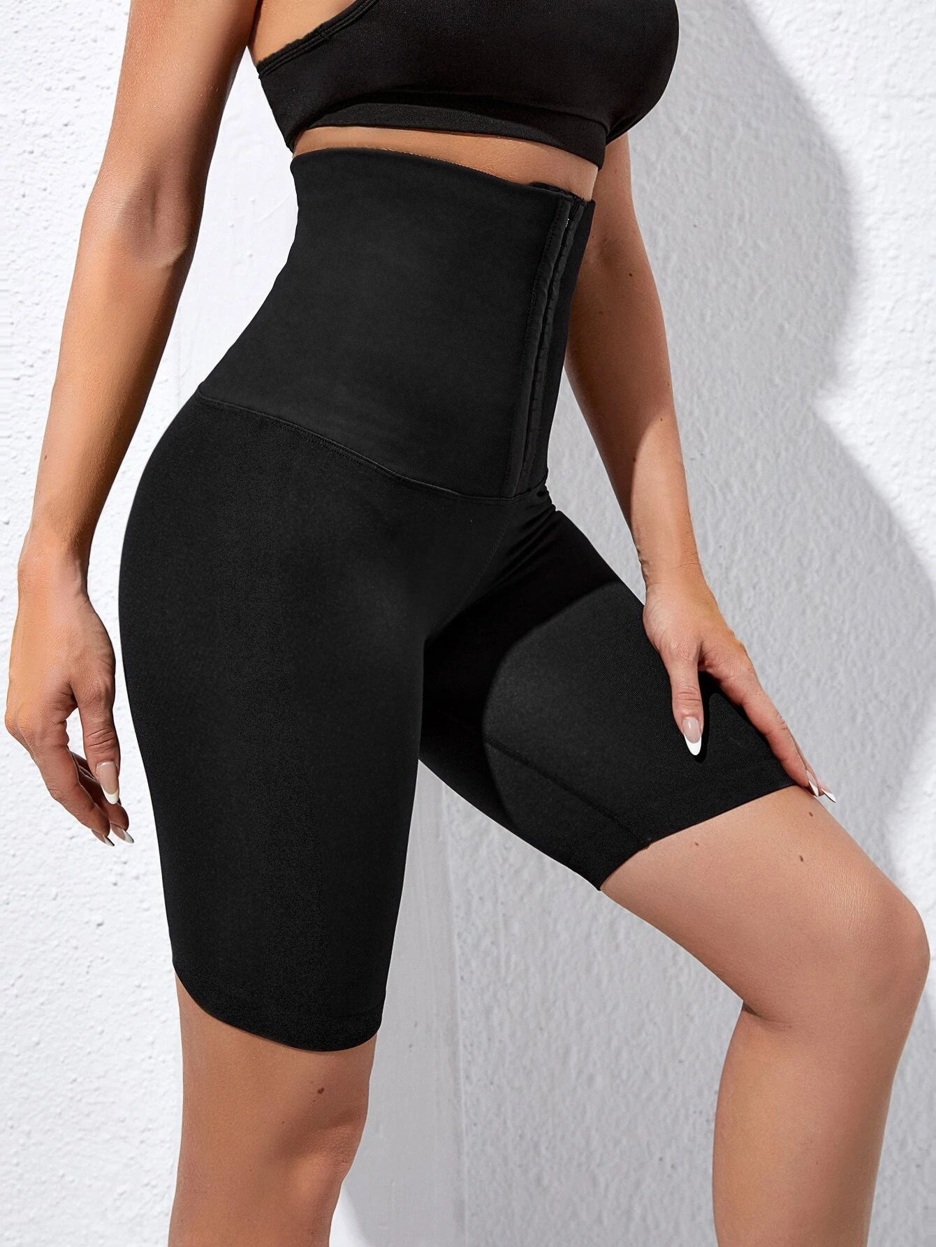 ZASUWA Female Solid Color Sweating Corset Spandex Gym Booty Shorts