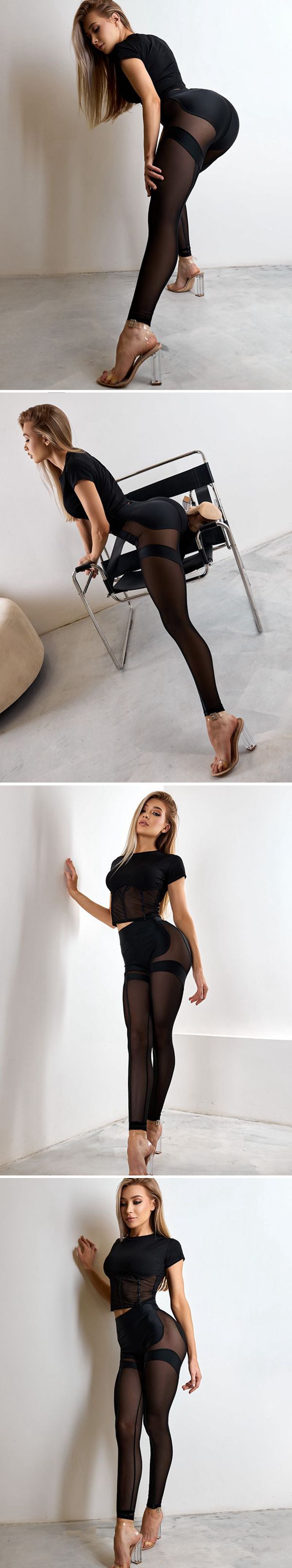 ❤ZASUWA Female Mesh Breathable High-rise Hip-lift Leggings