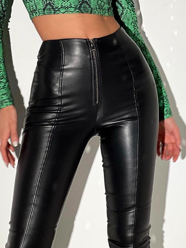 ZASUWA Female Sexy Faux Leather Zipper Leggings
