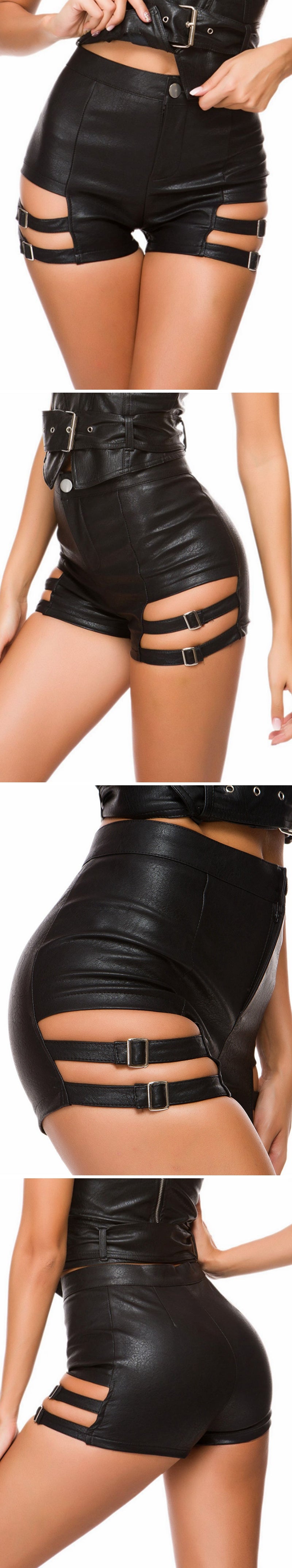 ZASUWA Female Faux Leather Hollow Out Gym Booty Shorts