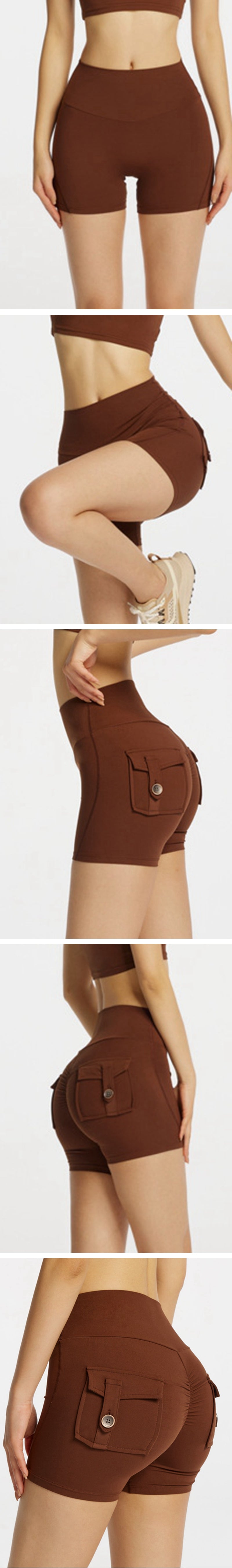 ZASUWA Female Scrunch Bum High Waist Pocket Spandex Gym Booty Cargo Shorts