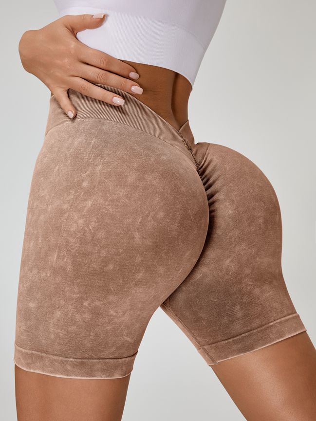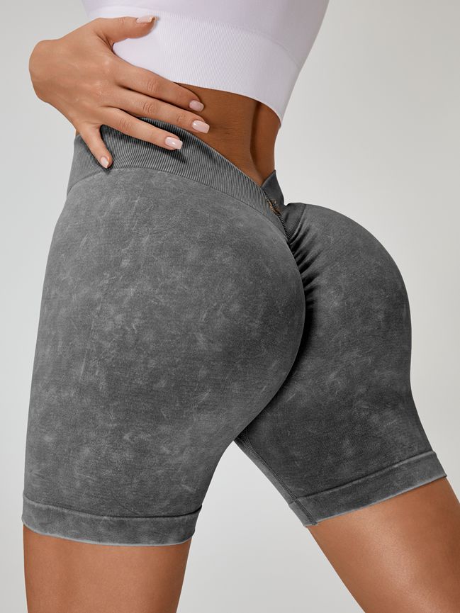 ZASUWA Female Deep V Back Faux Denim Scrunch Bum Spandex Gym Booty Shorts
