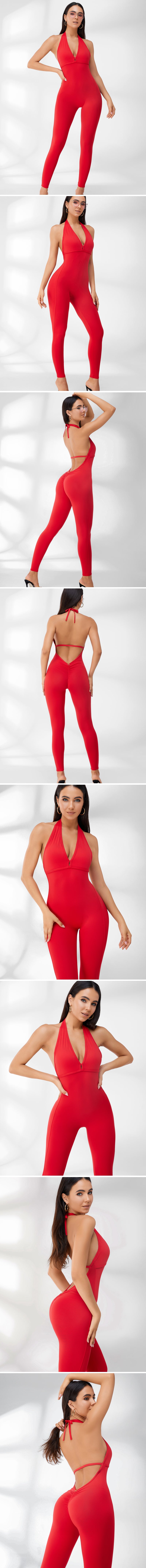 ZASUWA Female Deep V-neck Halter Scrunch Bum Jumpsuit
