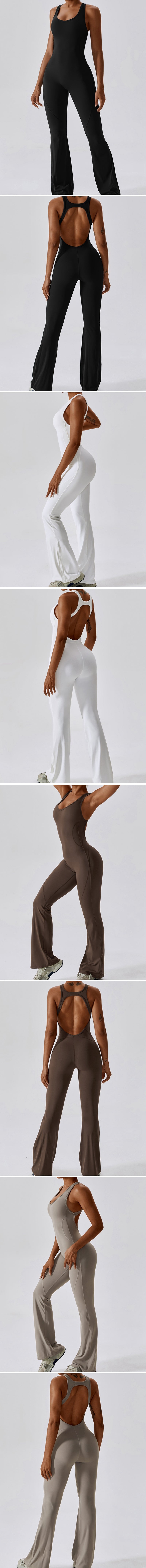 ZASUWA Female Hollow Out Backless Flare Jumpsuit