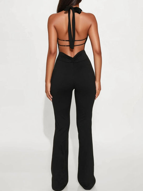🖤ZASUWA Female Backless Flare Jumpsuit