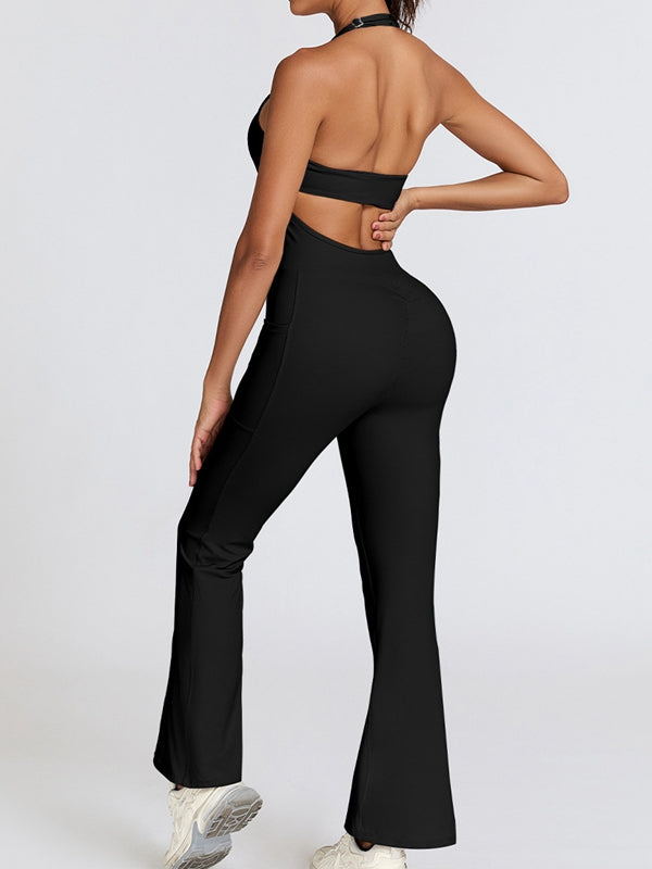 ZASUWA Female Backless Flare Halter Jumpsuit