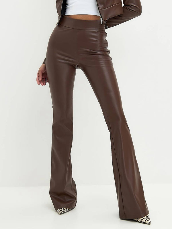 ZASUWA Female Sexy Faux Leather Flare Leggings