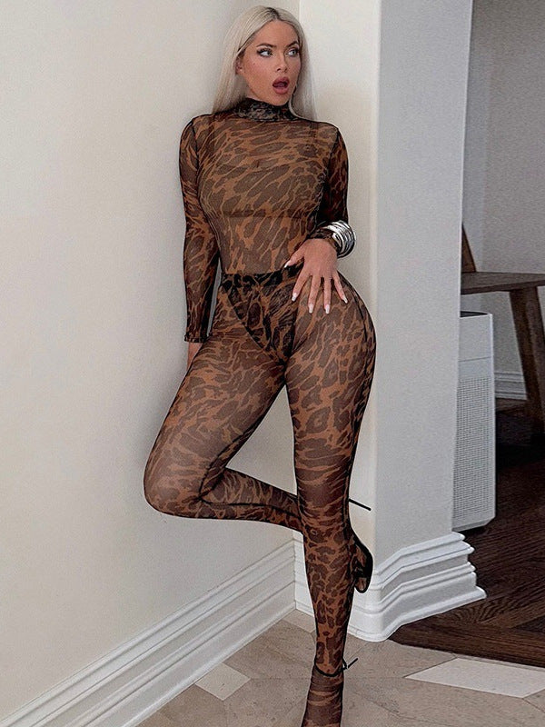 ZASUWA Female Leopard Print Mesh Jumpsuit