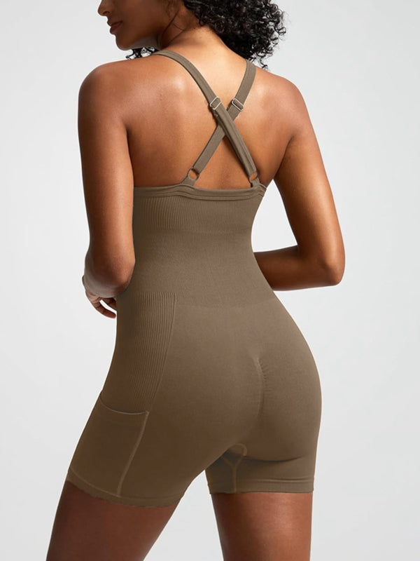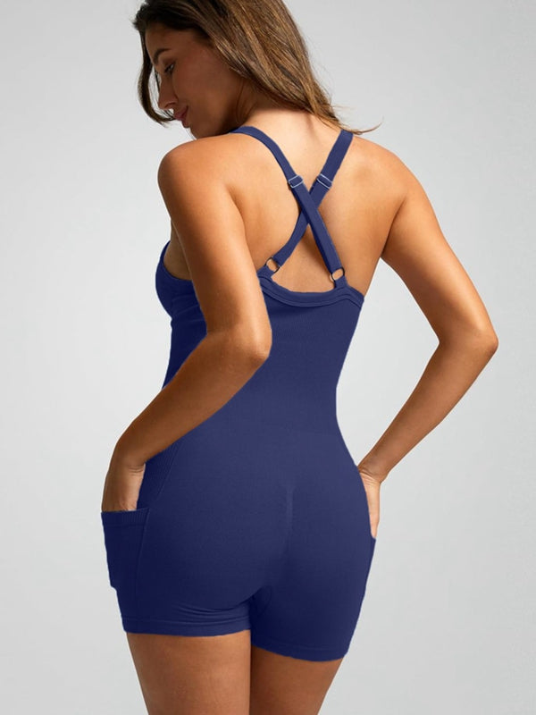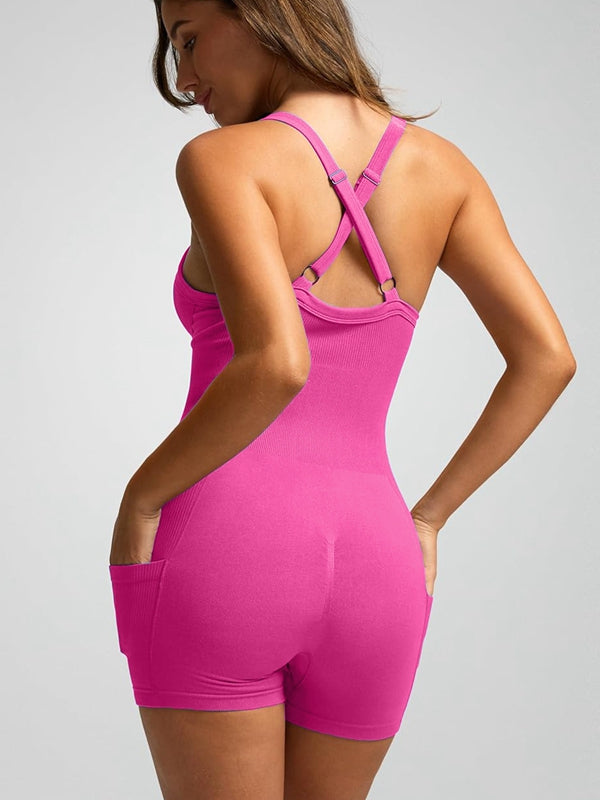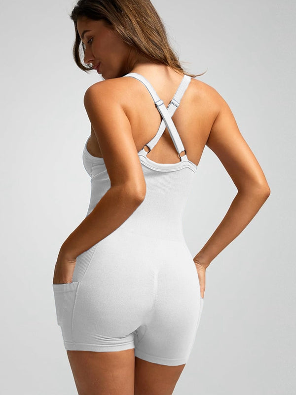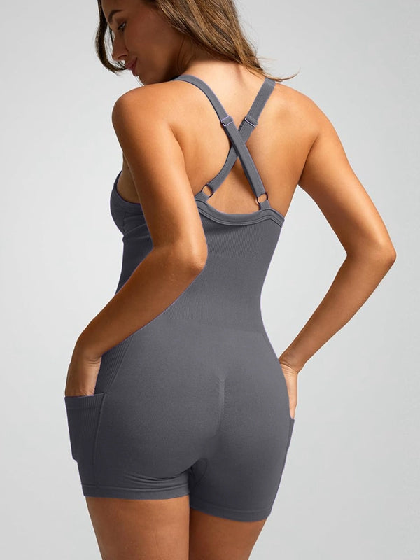 ZASUWA Female Ribbed Pocket Cross Back Scrunch Bum Seamless Romper