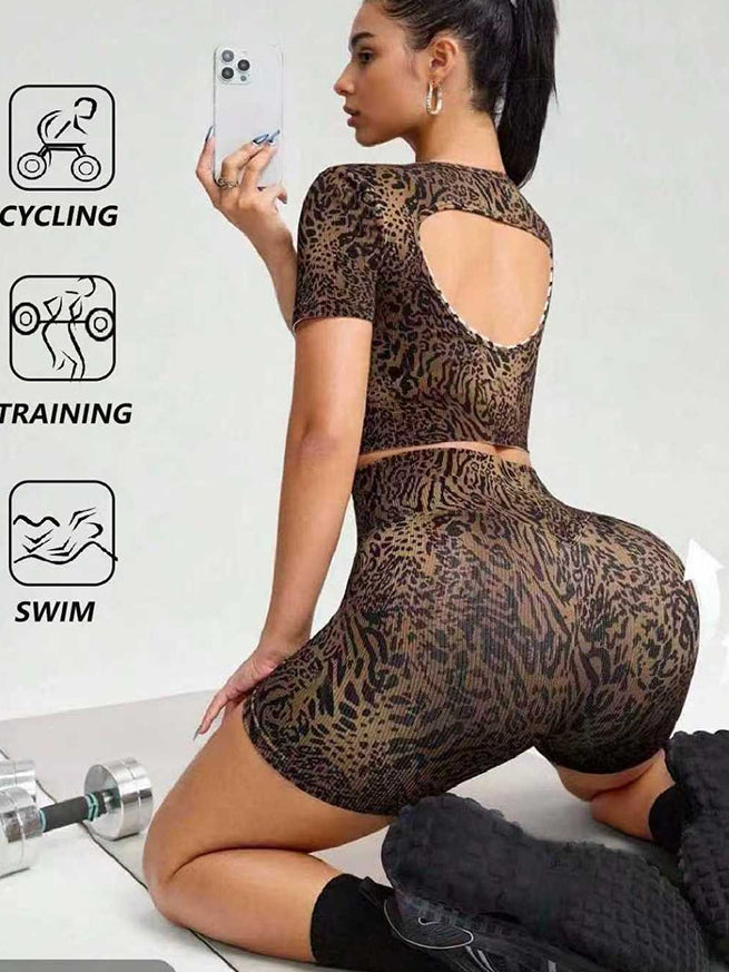 ZASUWA Female Leopard Print U Collar Short Tracksuit