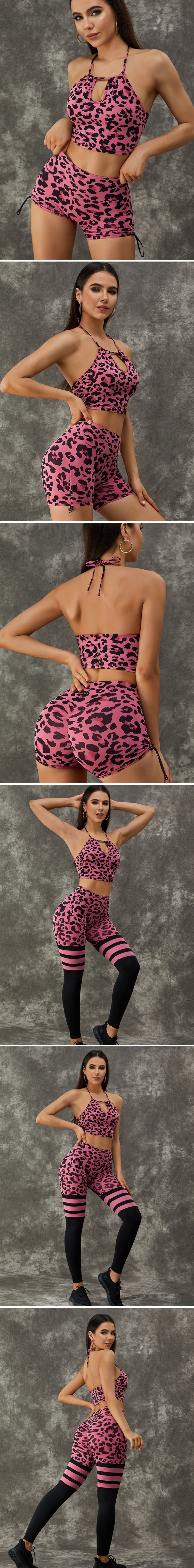ZASUWA Female Leopard Print Hollow Out Halter Scrunch Bum Tracksuit