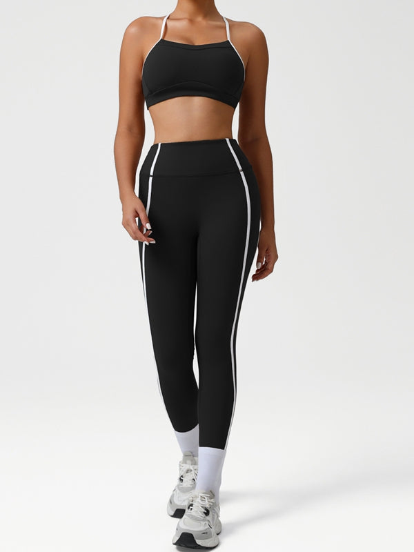 ZASUWA Female Contrast Color Stripes Cross Back Tracksuit