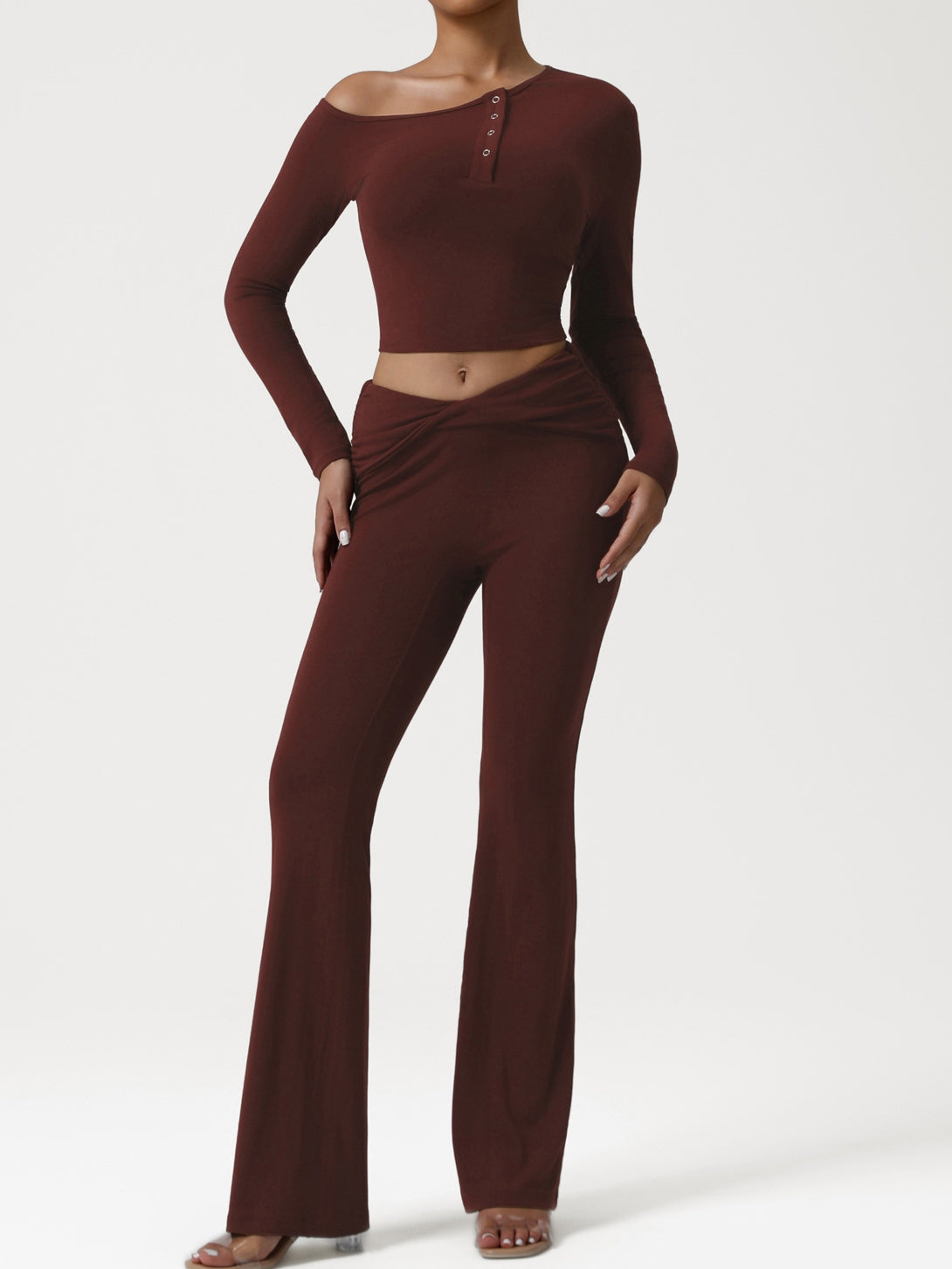 ZASUWA Female Solid Color Casual Folds Buttons Tracksuit