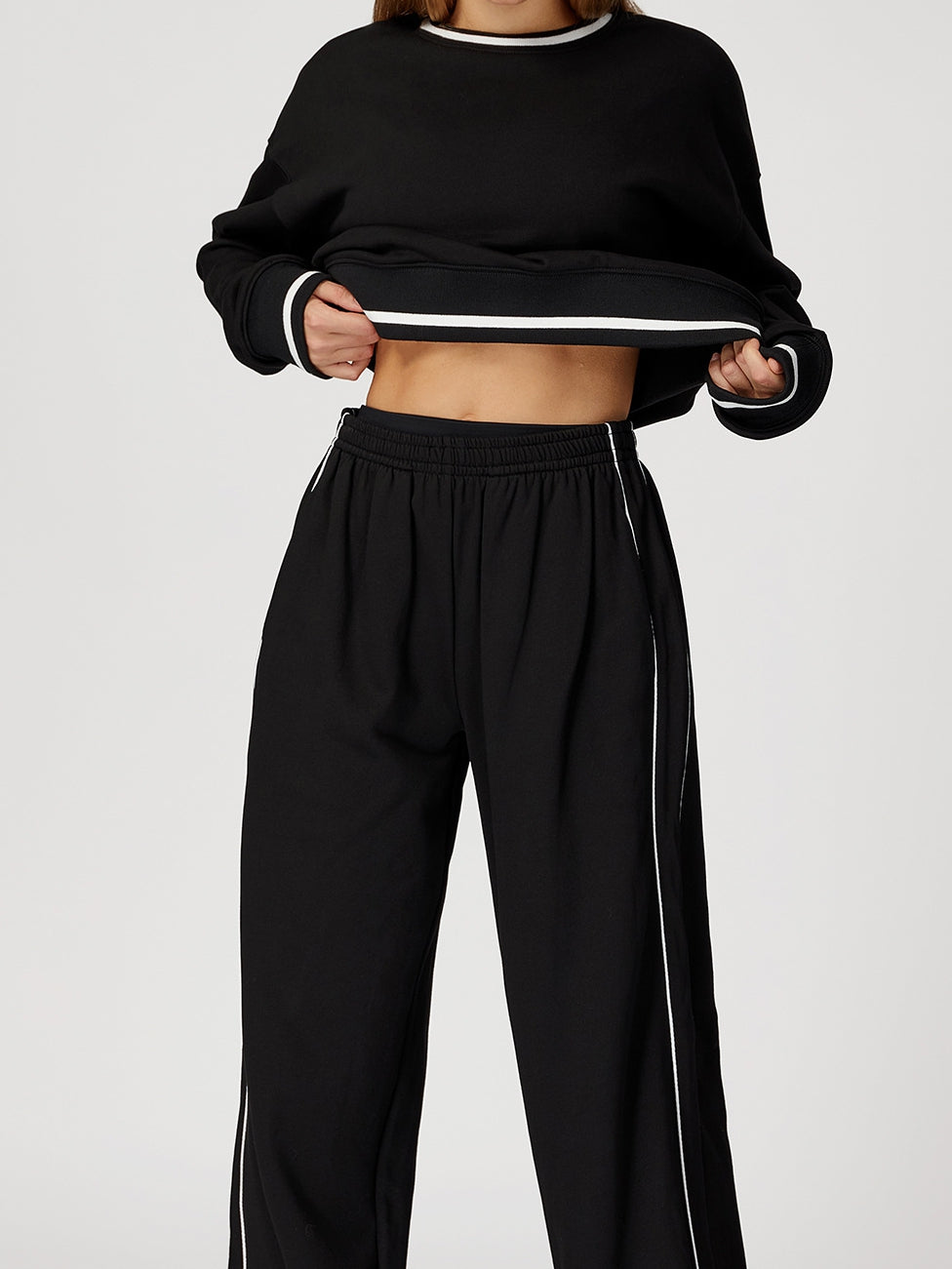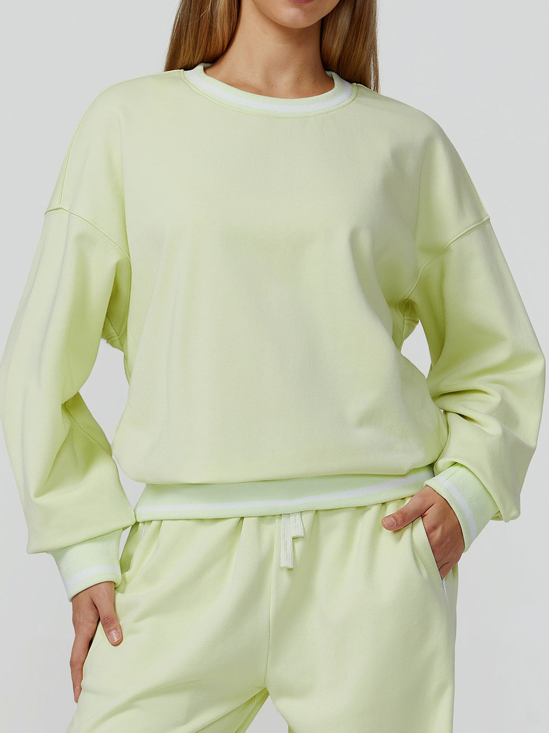 ZASUWA Female Contrast Color Casual Loose Round Neck Hoodie
