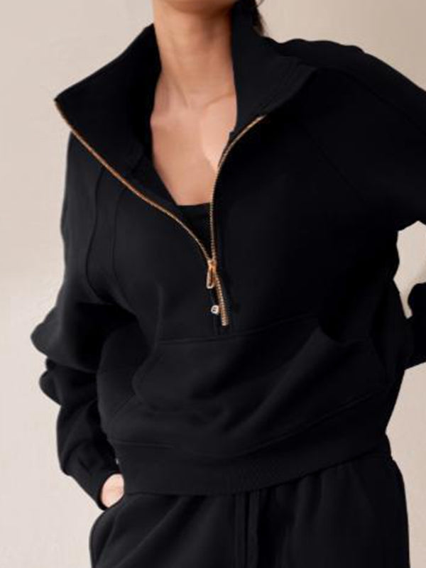 ZASUWA Female Pocket Zipper Casual Hoodie
