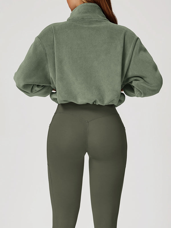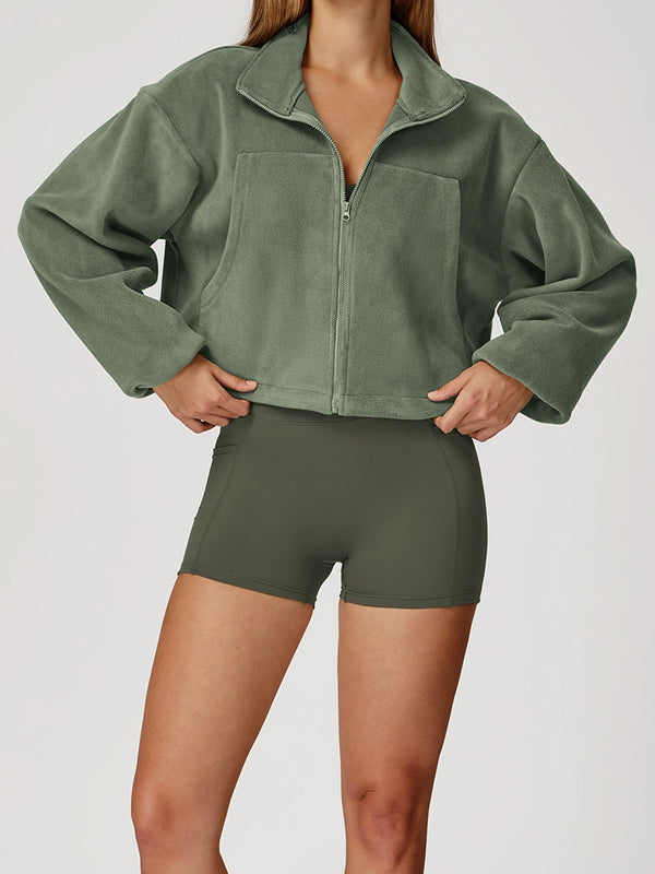 ZASUWA Female Fleece Pocket Cropped Jacket