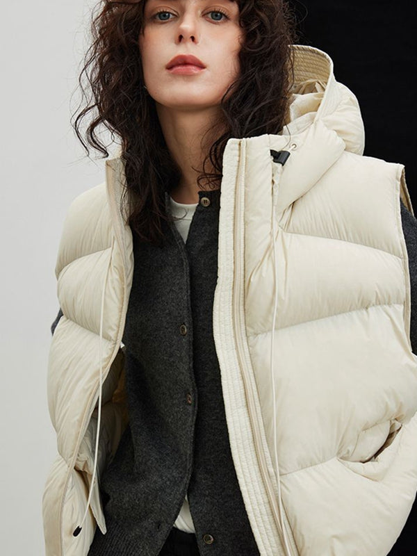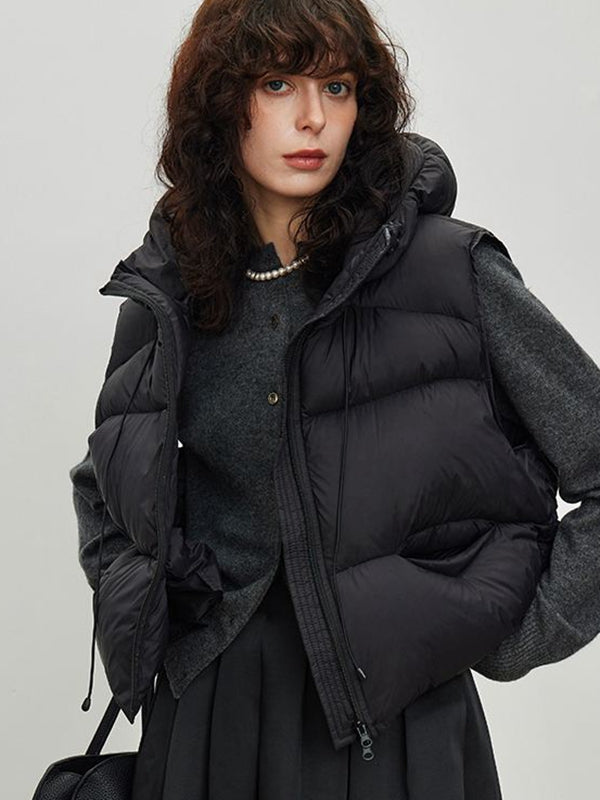 ZASUWA Female Pocket Zipper Warm With Hat Coat Vest
