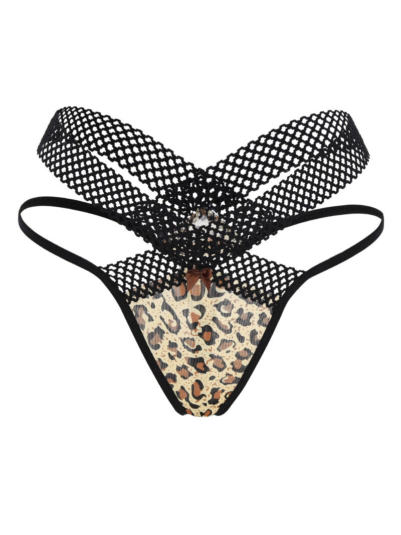 ZASUWA Female Leopard Print Sexy Lace Ultra-thin Thongs
